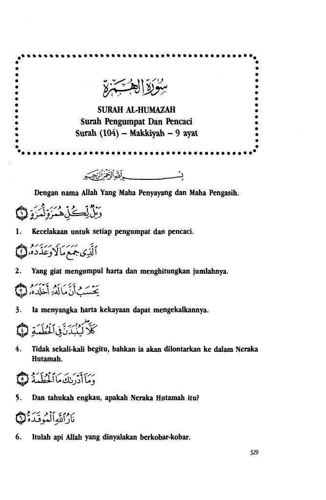 Baca tafsir surat al humazah Tafsir Al Humazah Surah Al Humazah Pengumpat Surah ke-104. Baca juga:tafsir dan tafsir surat al humazah