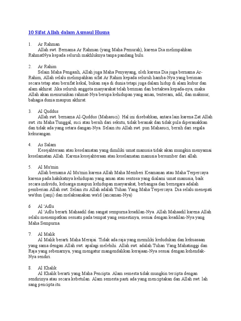 | Judul Surah: Materi 10 Sifat Allah Dalam Asmaul Husna Kelas X Pdf |